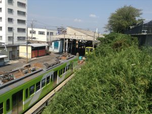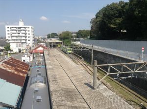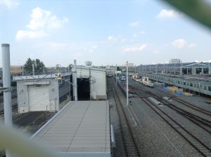 流山駅上の歩道橋から車庫を見る。