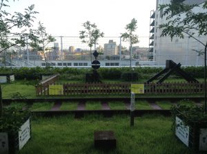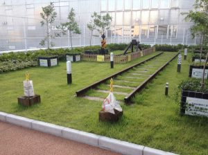 「とこてらす」の中にあるトコニワは日中開放されており、鉄道関係の標識やレールなどが展示されている。