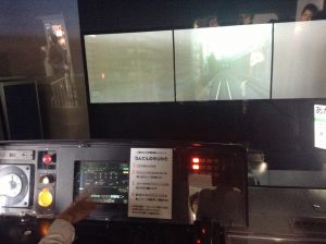 KASHII先生運転シミュレーター体験中。なお、この後わいもやったがブレーキタイミング誤って盛大にオーバーランかますというねwww