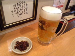 生ビール(もしくは日本酒立山)に白えびの素揚げ(取材当時)がついて1000円ポッキリ。