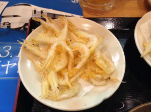 もう一方の白えびの素揚げがこちら。先ほどの白えびの天ぷらと比べると、白えびの形がはっきりと残っているのがわかります。素揚げなので、当たり前と言っては当たり前なのですが・・・。