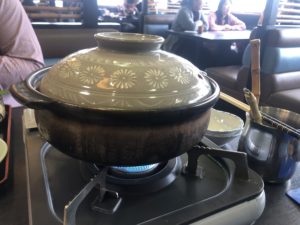 あんこう鍋が出てきました。今回訪れた店はあらかじめ具を中に入れて、席に運ばれた後に火を入れる方式でした。