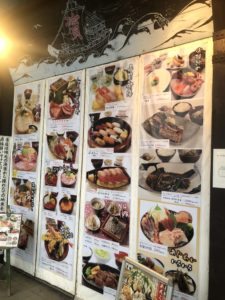 参考までに入り口にあるメニュー表の写真を。観光地のレストランとかにあるようなタイプです。はい。