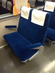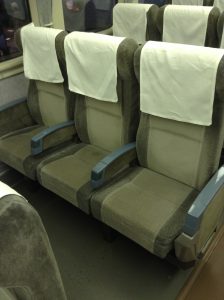 国鉄101系の座席です。青々としたシートは国鉄車である証ですね。