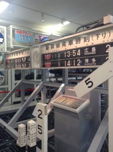 0系新幹線の行先表示です。登場当時はサボ(行先板)を使っておりました。今では、「新幹線」が定着しておりますが、新幹線が出た当時は「超特急」と呼ばれていました。