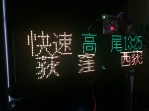 たけのこ氏所蔵のLED方向幕です。現地にて、このLED方向幕を使って、いろいろな表示を実演する予定です。ちなみに、これは、東急線内のFライナーの表示です。たぶん、東武車の表示かなあ・・・。