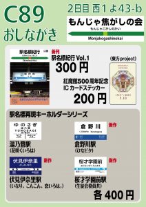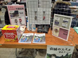 前回の竹田出版は、2日目の西2え44-bにて展開されました。なぜか、右側には駅名標キーホルダーがあるぞ?