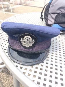 わいが持参する展示物その壱。西武鉄道の旧制帽です。今の制帽の1世代前のやつですね。