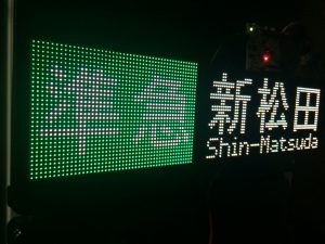 また、このLED方向幕では、JR東日本のATOS発車標も再現出来ちゃいます。時間帯によっては、発車標が見られるかもしれませんね。