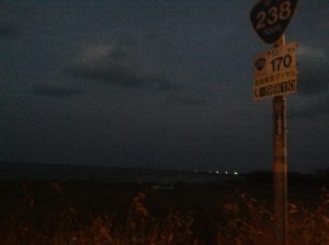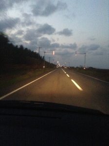 日没も近くなったので、ハイビームにして、闇夜に包まれつつある国道238号をひた走る。
