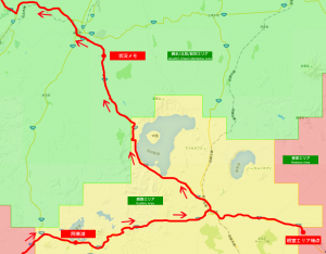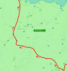 阿寒湖から根室エリア端点経由美幌・北見方面へのルート図は上記の通り。