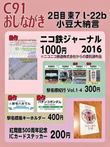 C91では、先ほどのお品書きにあった通り、「野毛八おでん」駅と「パチンコガンダム」駅の駅名標が加わりますので、ご期待ください。