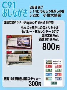 - もんじゃ焦がしの会オリジナルセパレート式カレンダー2017(北陸本線ver・西武101系ver)