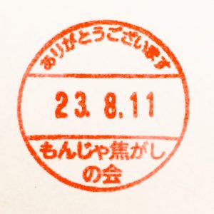 ちなみに、当サークル「もんじゃ焦がしの会」のスタンプ押印イメージがこちらになります。C90のときと一緒です。はい。
