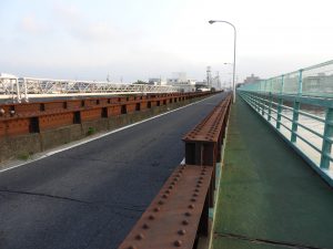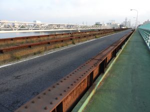 なお、こちら側のほうが元鉄道橋であったことが目に見えて分かる。(海側は歩道が増設されているということもあるため)