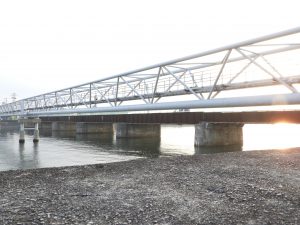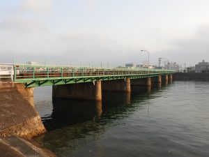 「津興橋」の逆サイドの撮影を試みる。水道橋が近くを通っているので、写りが悪いのは止むなし。