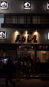 ということで、宵宮本番の舞台「天びん屋」にきました。ついた時点で行列ができていたため、15~20分ほど待つこととなった。そして、店の人に呼ばれて、3Fまで上っていった。