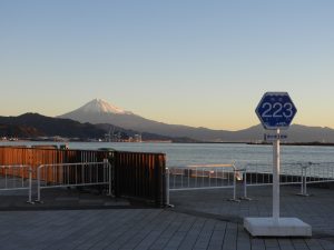 翌日(12月29日)は4時くらいに目が覚めてそのまま寝れずに起床予定時刻の5:30を回る。そのあと、支度を済ませて6:30前にホテルを発ち、清水港へと向かう。途中でコンビニで朝食の調達を済ませて、清水港に7時前に到着した。