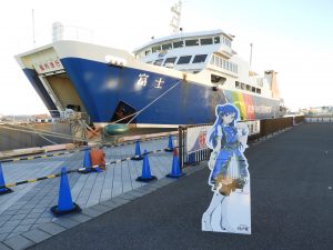 フェリー乗船時刻の前に暇なので如月千早のPOPを広げて記念撮影とかやってた。年末年始だが、意外と車や人の数が少ないこともあってできた芸当でもある。