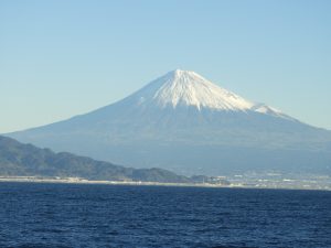 7:30前にフェリーに乗りこみ、7:55に清水港を出港した。とりあえずは一般客室の桟敷席で富士山がよく見えるタイミングを見計らっていた。