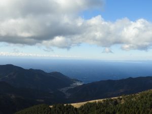 そして、西天城高原の牧場界隈からもう少し上がったところで撮影した写真がこちら。眼下にはさっき走ってきた道路が見えるので、すごく高いところまできたという実感が嫌でも湧くことになる。