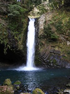 最後の滝は、河津七滝で一番大きい大滝。垂直立ち上がる 玄武岩の壁から雄大に流れ落ちているさまはまさに圧巻です。