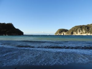 ちなみに、ここは岩地海岸と呼ばれる場所で、夏は多くの人でにぎわうらしい。伊豆の中でも海のきれいさは随一だとか。