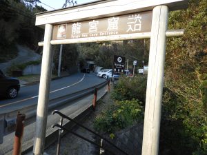 というわけで、龍宮窟の入り口にやってきました。オフシーズンなので駐車場は無料でしたが、夏場は1500円くらいとられるそうで。