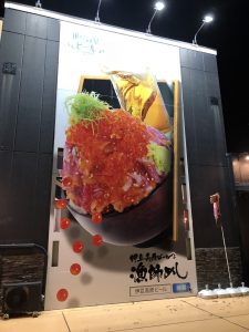 というわけで、伊豆高原ビール本店に到着。ダイナミックな海鮮丼の垂れ幕がでかでかと掲示されていた。