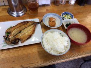 今回は、鯵の開きが目的だったので、ほかは頼んでませんが、食べログなどで調べてみると丼ものや刺身定食は観光客を意識したようなオシャレ~なものが出るそうです。はい。店の雰囲気と出てきたメニューのギャップをよく捉えるかそうでなく捉えるかは人次第ではありますけれども。