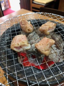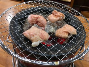やわらかな歯応えがあり皮の部分と、内側のぶ厚く脂が付いている部分があり網焼きにするとコロコロになるのが特徴となっています。