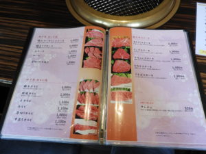 別のページをめくると、タン・ハラミ・ホルモンも各種ありますね。見れば見るほどうまそうに感じますね。