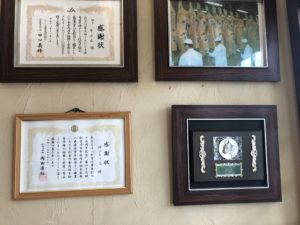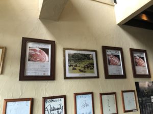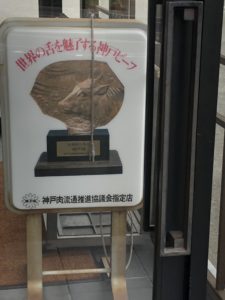 店の入り口には、神戸ビーフ品評会の最優秀賞だったり、感謝状だったり、サインが飾ってあったりしました。そこそこ名が知られている店である証拠ですね。