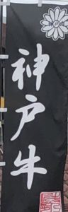 店先に出す電飾看板と店の駐車場に掲げられている神戸牛(右上に小さく神戸肉)の旗を撮影してみました。
