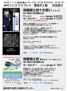 ※また、上述に際して、当サークルおよび「香椎浜工廠」(現業騎士団名義)の両方の頒布品のお買いあげの場合でも、後者の金額は除外となりますので、ご了承ください。(例:当サークル2026年カレンダー+現業騎士団Tシャツを購入した場合は合計5000円ですが、後者の金額が除外となるため、特典の対象は1000円のマグネットのみとなります。)